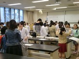 夜は、レセプションが開かれ、大人に混じって立食形式のパーティに参加しました。食事をとりながら、いろいろな人とコミュニケーションをとり、シンポジウムの感想や意見を話し合う楽しさを、大妻生も感じてくれたでしょうか。こうして長く充実した一日が終わりました。