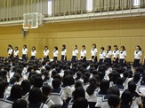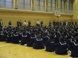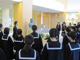 また,終業式終了後には高校生徒会役員の交代式が行われ,新しい生徒会がスタートしました。旧から新への引き継ぎの活動として,大震災被災者への募金活動への継続的な協力を全校生徒に呼びかけました。