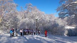 12月22日(月)、本格的に講習がスタートしました。昨日よりは少し寒く、曇ってはいましたが、生徒たちのやる気は十分。初心者班もついにリフトデビュー!リフトを止める事も多々ありましたが初めて見る山の上からの景色に心を踊らせ、普段の学校生活とはまた違った集中力でみるみる上達していきました。午後の講習では、気持ちが折れそうな生徒もいましたが休憩をはさみ、雪合戦をはさみ、何とか乗り切りました。明日筋肉痛だったり眠かったりするのは