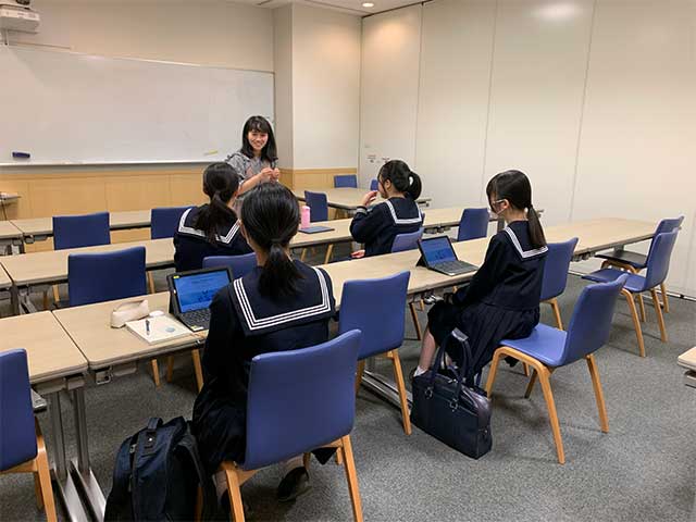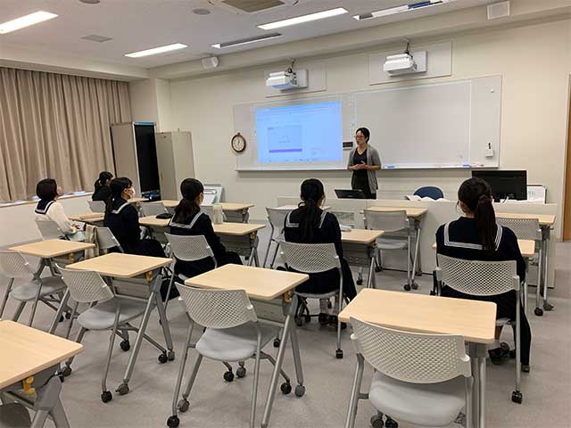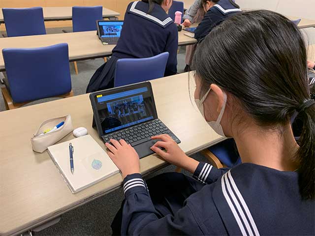 この企画は、八大学(北海道大学、東北大学、東京大学、東京科学大学、名古屋大学、京都大学、大阪大学、九州大学)の工学部・工学研究科で学ぶ女子学生から研究や学生生活の様子をオンラインで聴講するものです。本校からは中学3年生と高校1年生が参加しました。参加した中学3年生の一人は夏休みに参加した大学見学会がきっかけで工学分野に興味を持つようになり、今回の企画に参加したと話していました。