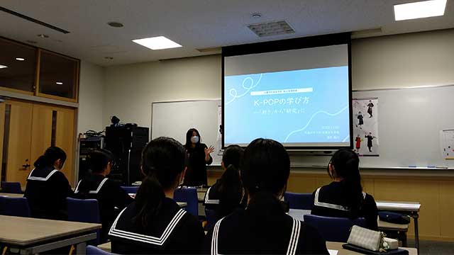 11月22日(土)放課後、大妻女子大学比較文化学部の先生をお招きし、『K-POPの学び方「好き」から「研究」に』というテーマで、中学3年生と高校1年生の希望者を対象に講義をしていただきました。先生のご専門は韓国と日本の歴史で、今回は身近なキーワードから学問へアプローチする内容でした。