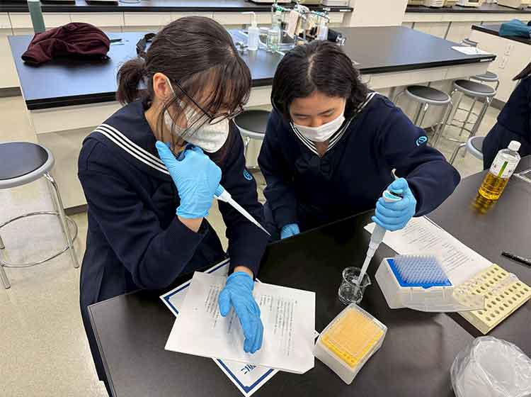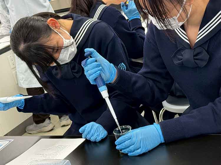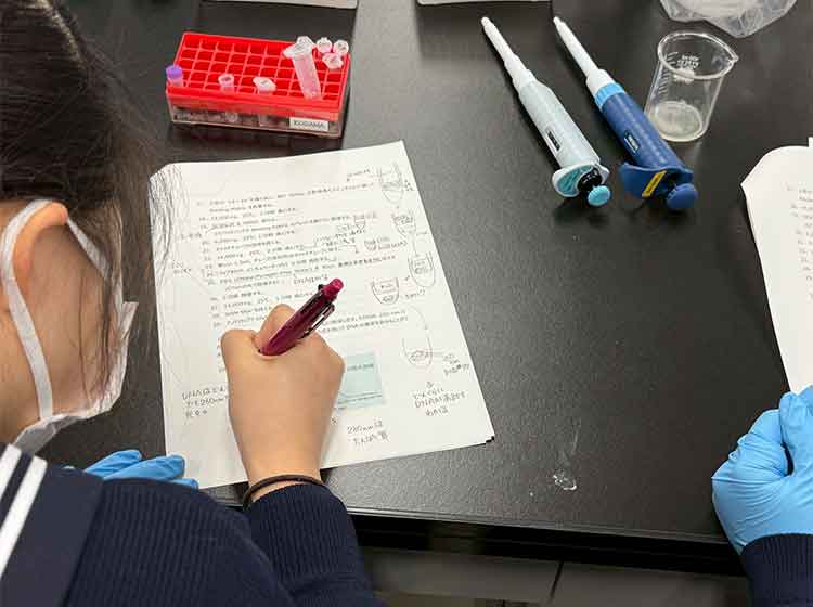 東京薬科大の学生の方に丁寧に教えてもらいながら、初めて触る実験器具でDNAを抽出することができました。大学の実験室で、普段はできない経験をさせていただきました。
