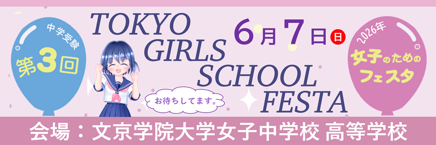 6月7日(日)に文京学院大学女子中学校高等学校で開催されるTOKYO・GIRLS・SCHOOL・FESTAに以下の内容で参加します。ぜひご来場ください。