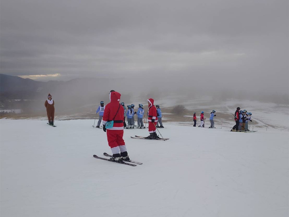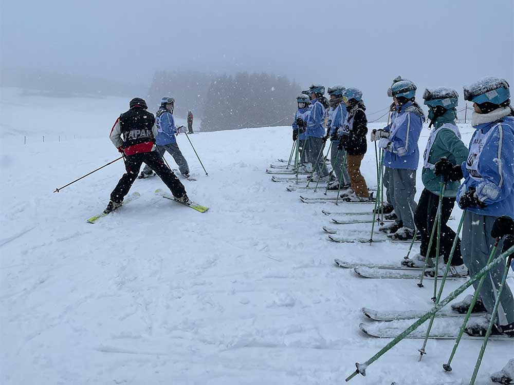 スキー教室も残り1日となってしまいました。 昨日に引き続き、サンタやトナカイ(先生)が見守ってくれました。 1.2日目に比べとても寒かったです。 吹雪でヘルメットに雪が積もった姿をお互いに笑い合いました! レッスン終わりにおしるこを食べ、凍えていた体があたたまりました。 疲労が溜まっていますがコーチやレッスン班のみんなと仲良く滑ることができるようになりました。 明日は最終日なので最後までがんばります!