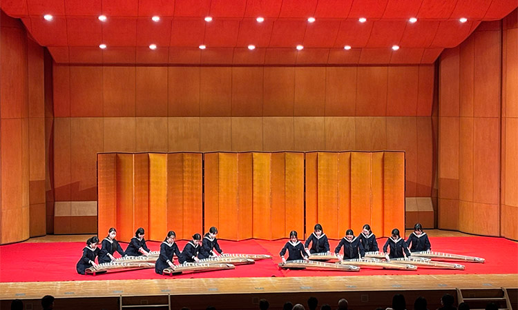 ごきげんよう。中3PR部です。 先日本校の中高箏曲部が、全国高等学校箏曲連盟定期演奏会に参加してきました。1年の成果として中能島欣一作曲「花吹雪」を演奏させていただきました。 舞い散る花の儚くも華々しい情景を思い描きながら、一音一音心をこめて演奏いたしました。 他校の素晴らしい演奏を聴き、刺激を受けるとともに、箏曲部としてさらに精進していきたいという思いを新たにいたしました。